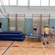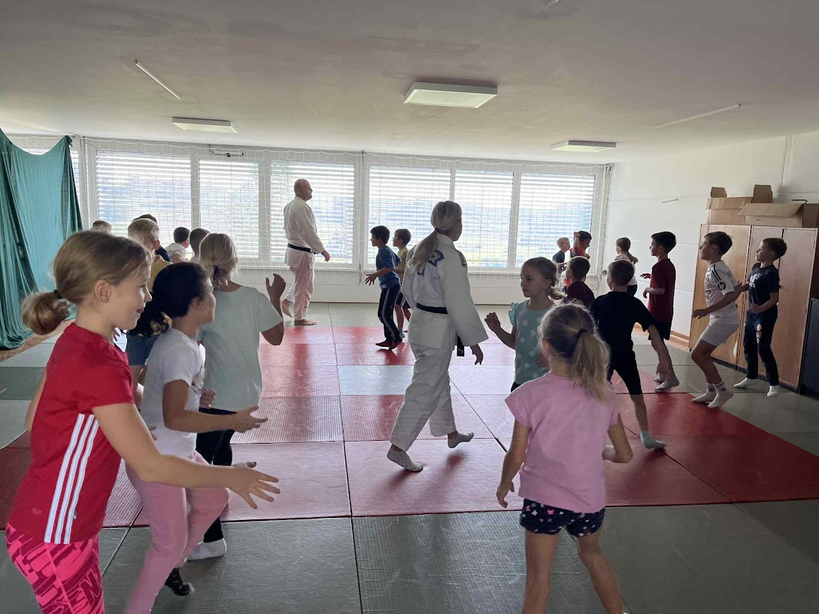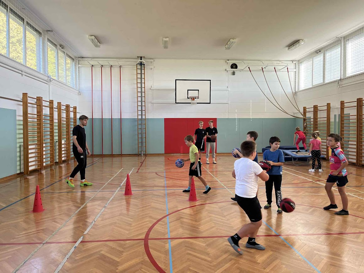 Po skupnem ogrevanju s Tadejem Verboštom so sledile različne športne dejavnosti. Učenci so se preizkusili v igrivi košarki, judu, tenisu ter odbojki na mivki.