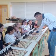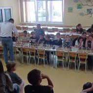 Nato je sledil vrhunec dneva – šahovska simultanka, v kateri se je 14 učencev vsak na svoji šahovnici istočasno pomerilo proti našemu gostu. Igrali so zbrano, pošteno in s spoštovanjem, hkrati pa se veliko naučili.