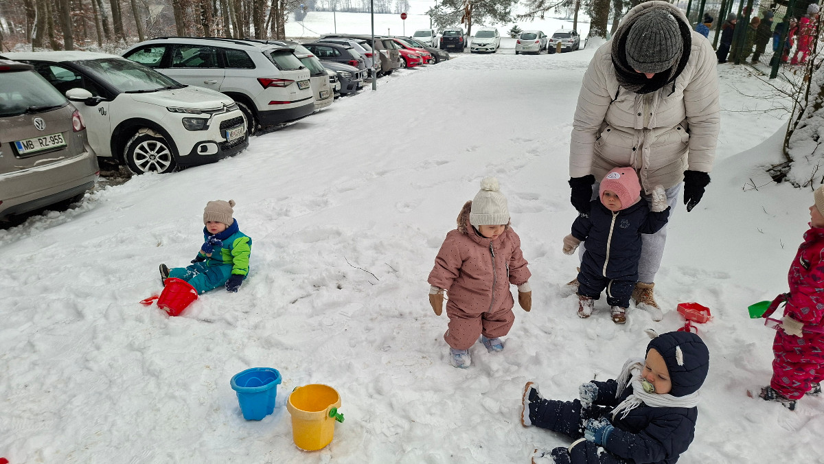 Po dolgem času nas je v našem vrtcu razveselil pravi zimski čudež – sneg! Za nekatere najmlajše otroke je bil to celo prvi stik z belimi snežinkami, kar je prineslo še toliko več navdušenja, začudenih pogledov in veselih vzklikov.