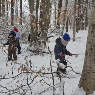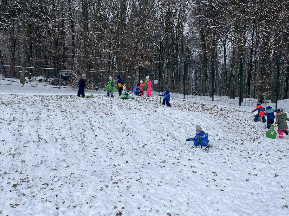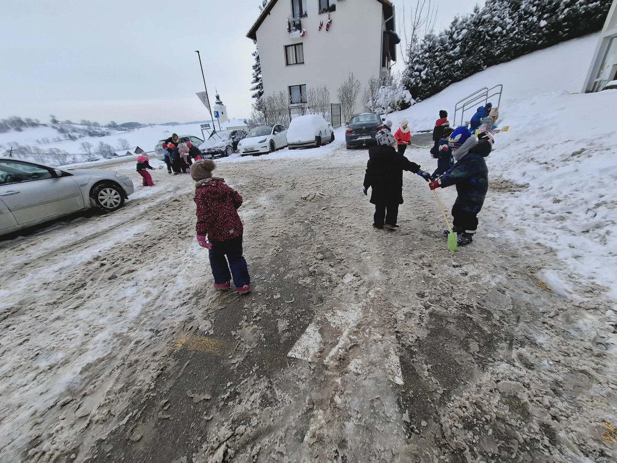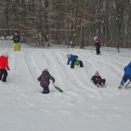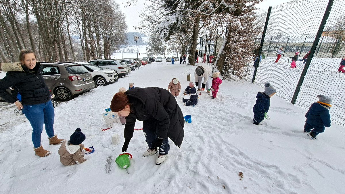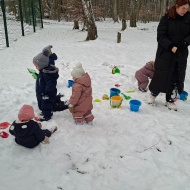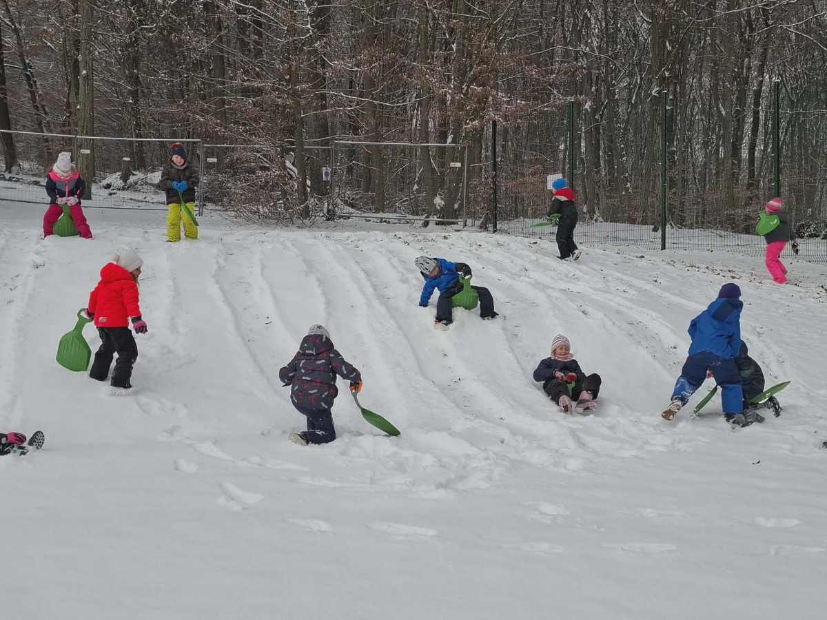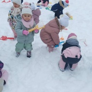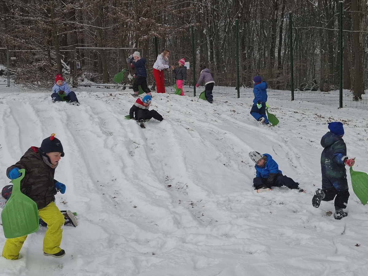 Že več dni zapored se snega radostimo in se z njim igramo na vse mogoče načine. Oblečeni v topla zimska oblačila, obuti v zimsko obutev in oboroženi z lopatkami, vedri in še marsičem, smo se vsak dan podali na zimske dogodivščine. Kepanje, kopanje, prenašanje snega, vožnja z lopatkami, čiščenje parkirišča in raziskovanje so postali del naše vsakdanje igre.