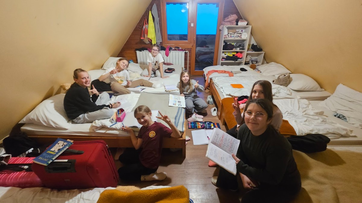 Očarala nas je domačnost Ruške koče ter prijaznost osebja. Po nastanitvi v sobah je sledil kratek sestanek z osnovnimi napotki in pravili bivanja. Po odličnem kosilu smo že komaj čakali na prvo smučanje in delo na snegu. Razdelili smo se v tri skupine, pridružil pa se nam je tudi učitelj Bojan.