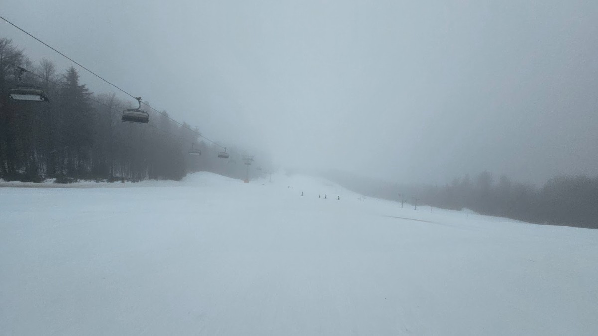 Zunaj pa megla in obilne padavine. Kljub temu smo varno izpeljali dopoldansko smuko. Padavine so se krepile, zato smo smuči za popoldan postavili v kot.