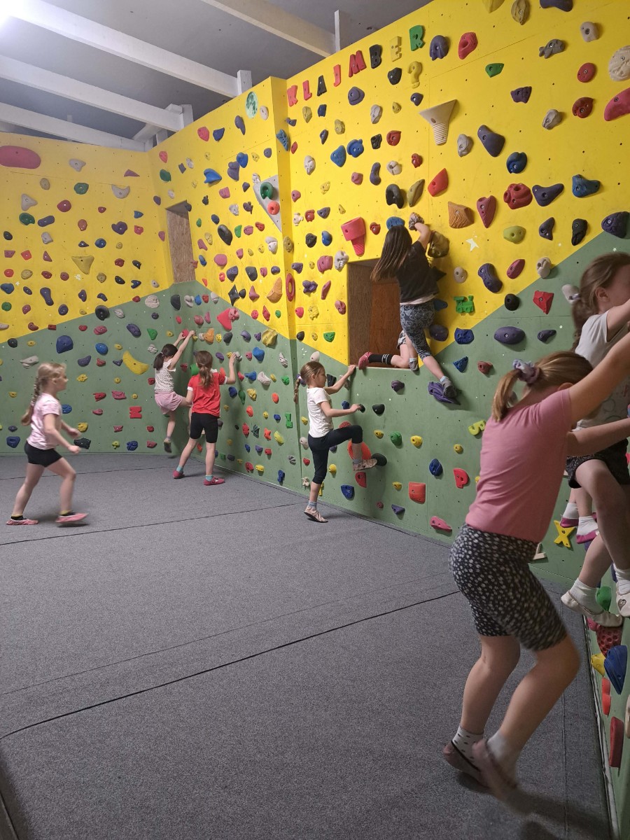 Prav tako smo doživeli še športno pustolovščino dneva – obisk Plezalnega centra Klajmber! Učenci so premagovali plezalni izziv, pogumno prijeli za oprimke in hitro ugotovili, da plezanje ni tako enostavno, kot izgleda od spodaj. Roke so kar hitro začele protestirati, mišice pa so se oglasile že po prvih poskusih. A to jih ni ustavilo! Z veliko vztrajnosti, smeha in spodbujanja so premagovali vedno nove izzive.