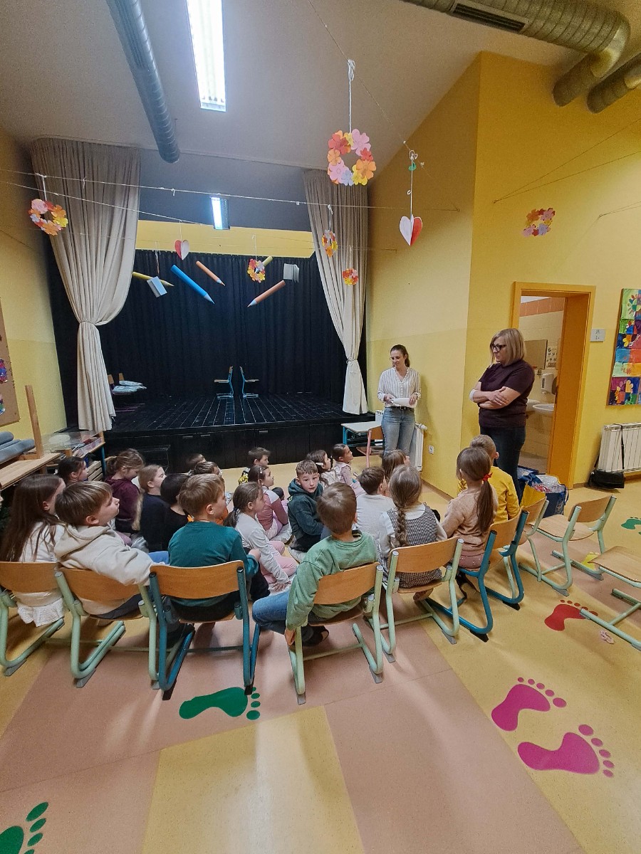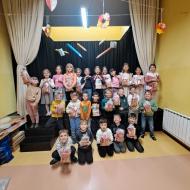 Danes smo se z otroki iz skupine Zvezdice ponovno odpravili na obisk v Knjižnico Lenart, ki smo jo v letošnjem šolskem letu že dobro spoznali. Jeseni smo jo namreč obiskali ob začetku projekta Knjižni nahrbtnik, danes pa smo se tja vrnili ob njegovem zaključku. Ob prihodu nas je prijazno sprejela knjižničarka, ki nam je zelo doživeto predstavila zgodbico o zajčku, ki mu je veter po gozdu raznesel perilo. Ker pa je bil prav 1. april, zajček živalim ni verjel, ko so mu to povedale. Mislil je, da si ga želijo malce privoščiti. Otroci so zgodbi z velikim zanimanjem prisluhnili, kasneje pa tudi zapeli. Sledila je ustvarjalna delavnica, kjer so otroci okrasili knjižna kazala. Nato je bila slavnostna podelitev priznanj in svinčnikov ob uspešnem zaključku projekta. Otroci so bili zelo ponosni, ko so ob aplavzu prihajali ponje. Poskrbljeno pa je bilo tudi za sladko presenečenje, zato smo se ob koncu še malce posladkali in v prijetnem vzdušju zaključili naše srečanje. Posebej smo se razveselili tudi darila, ki smo ga prejeli - dve knjigi, ki bosta še dodatno obogatili naš knjižni kotiček v igralnici in otroke še naprej vabili k listanju ter raziskovanju zgodb. Polni lepih vtisov smo se vrnili v vrtec, kjer bomo še naprej spodbujali ljubezen do knjig.