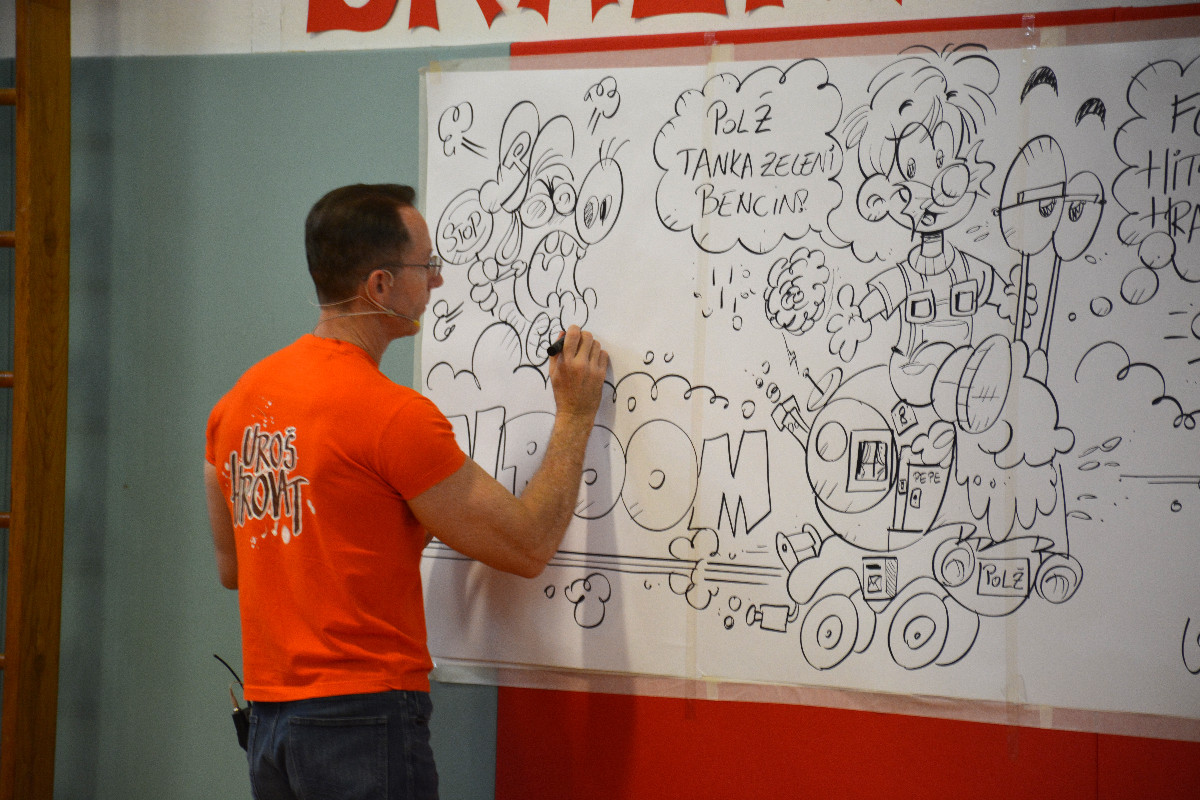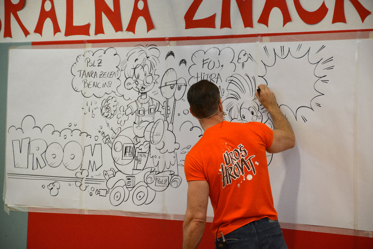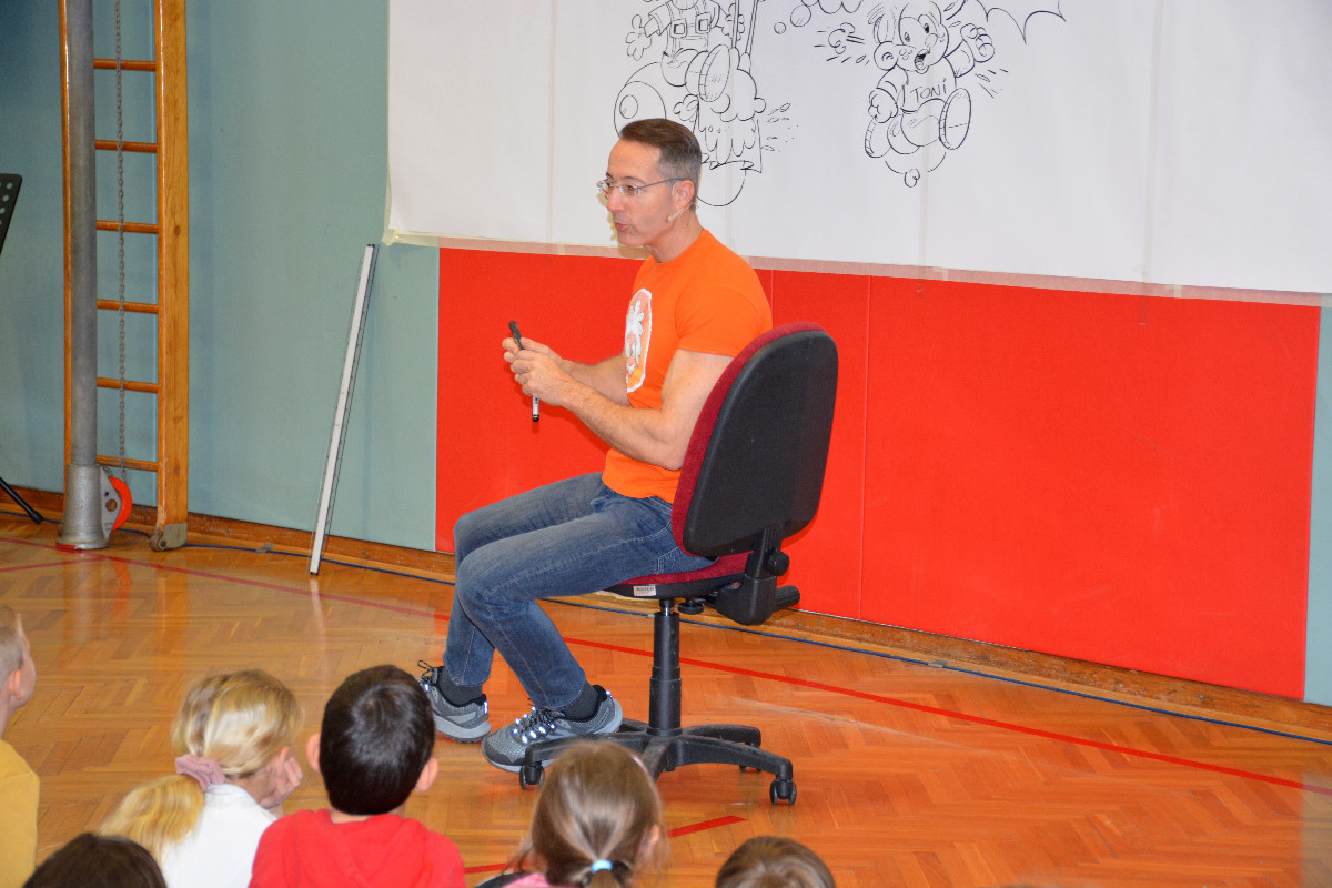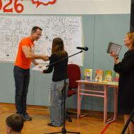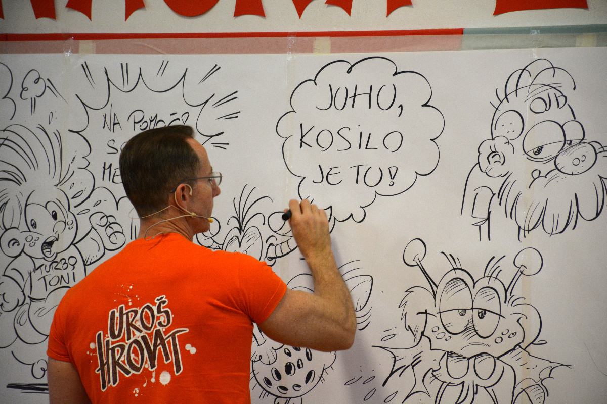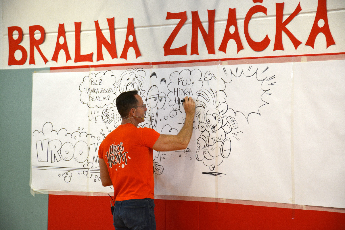 Dan smo sklenili s slavnostno prireditvijo. Uživali smo ob odlični pevsko-glasbeni točki vokalne skupine in šolskega ansambla pod mentorstvom učiteljice Metke Caf, navdušili pa so nas tudi nežni zvoki flavte, ki jih je pričarala Ina Črnčec. Osrednji gost prireditve, ilustrator in pisatelj Uroš Hrovat, nas je nasmejal in očaral z ustvarjanjem svojih izjemnih ilustracij.