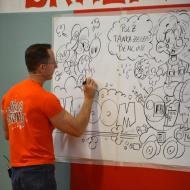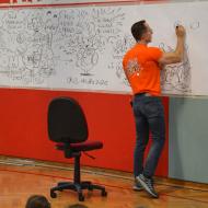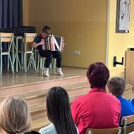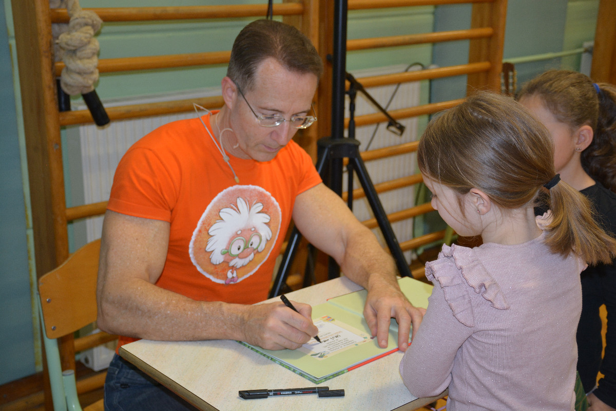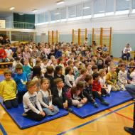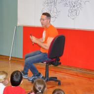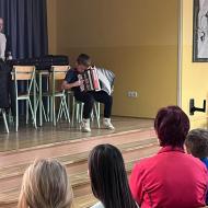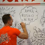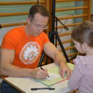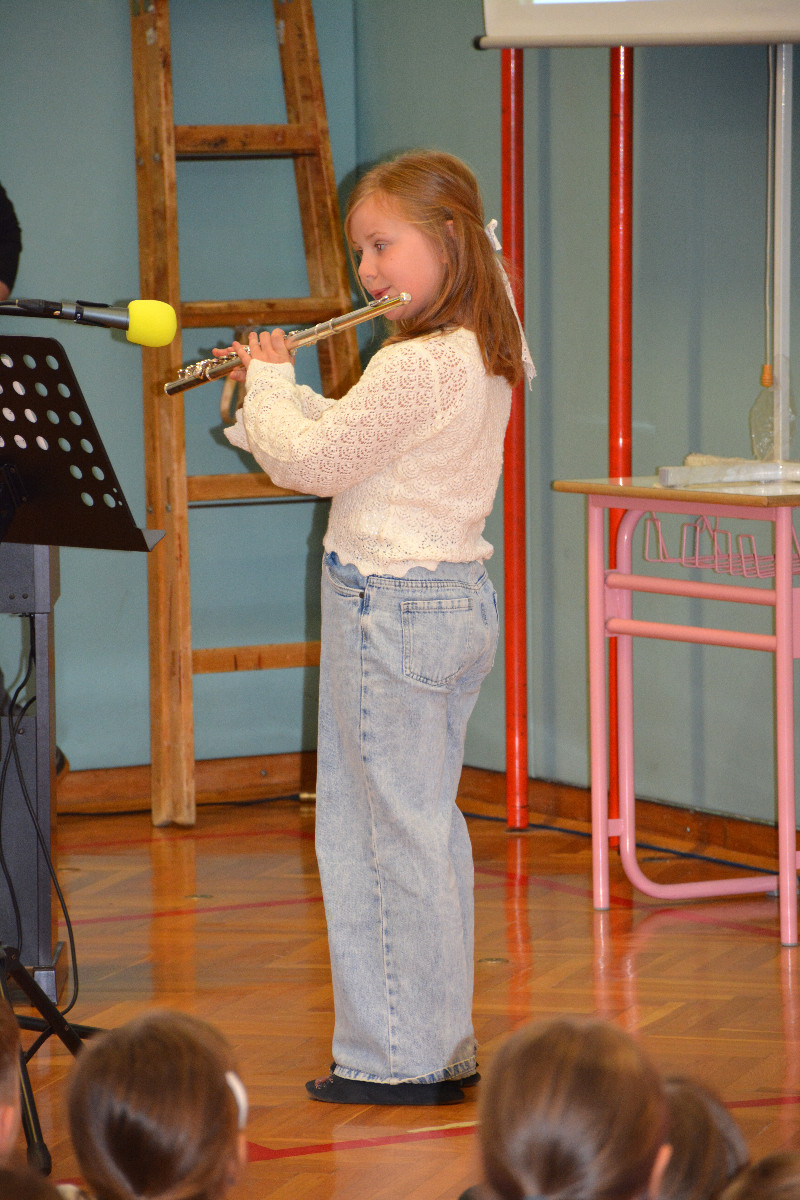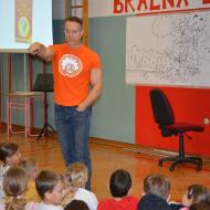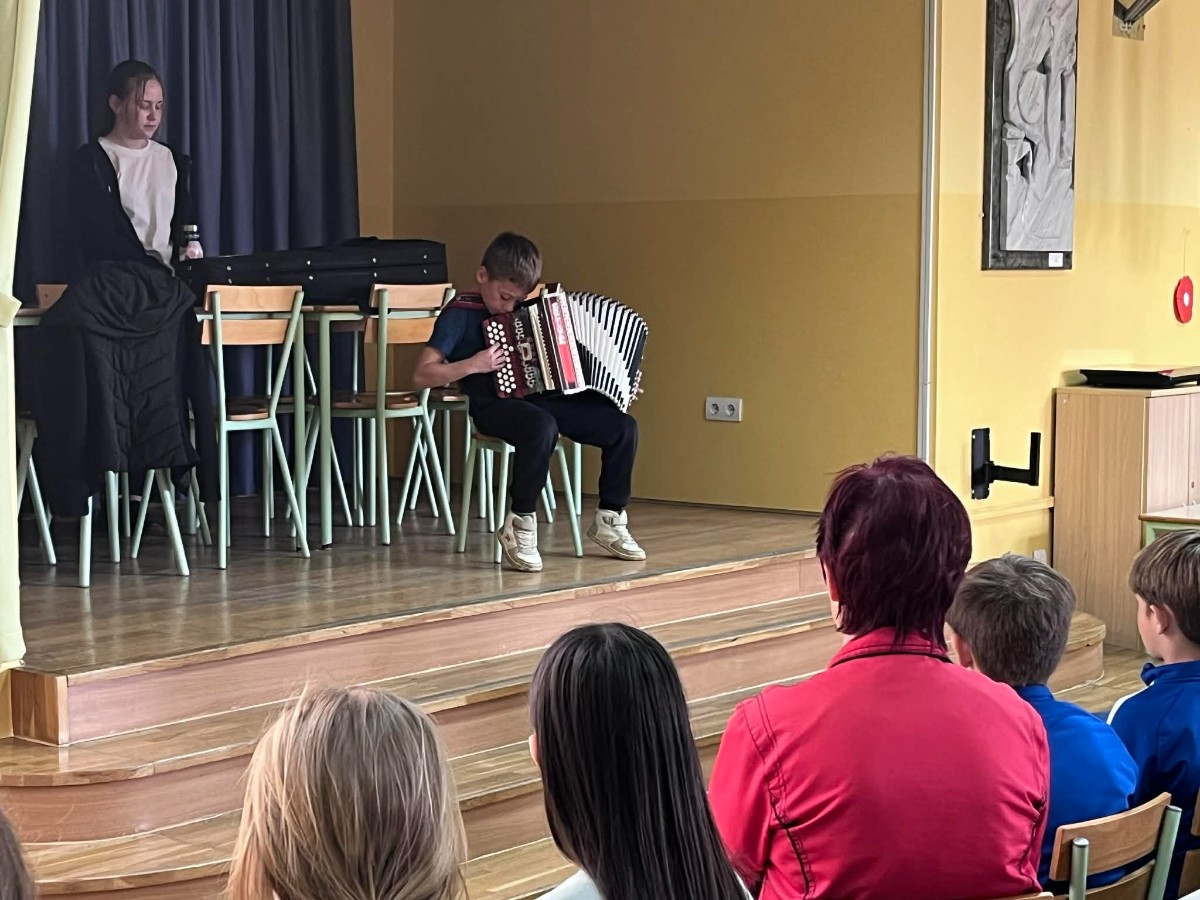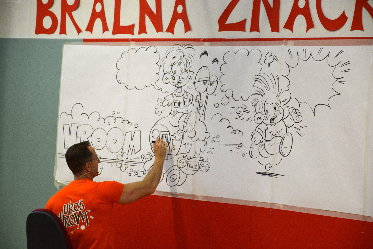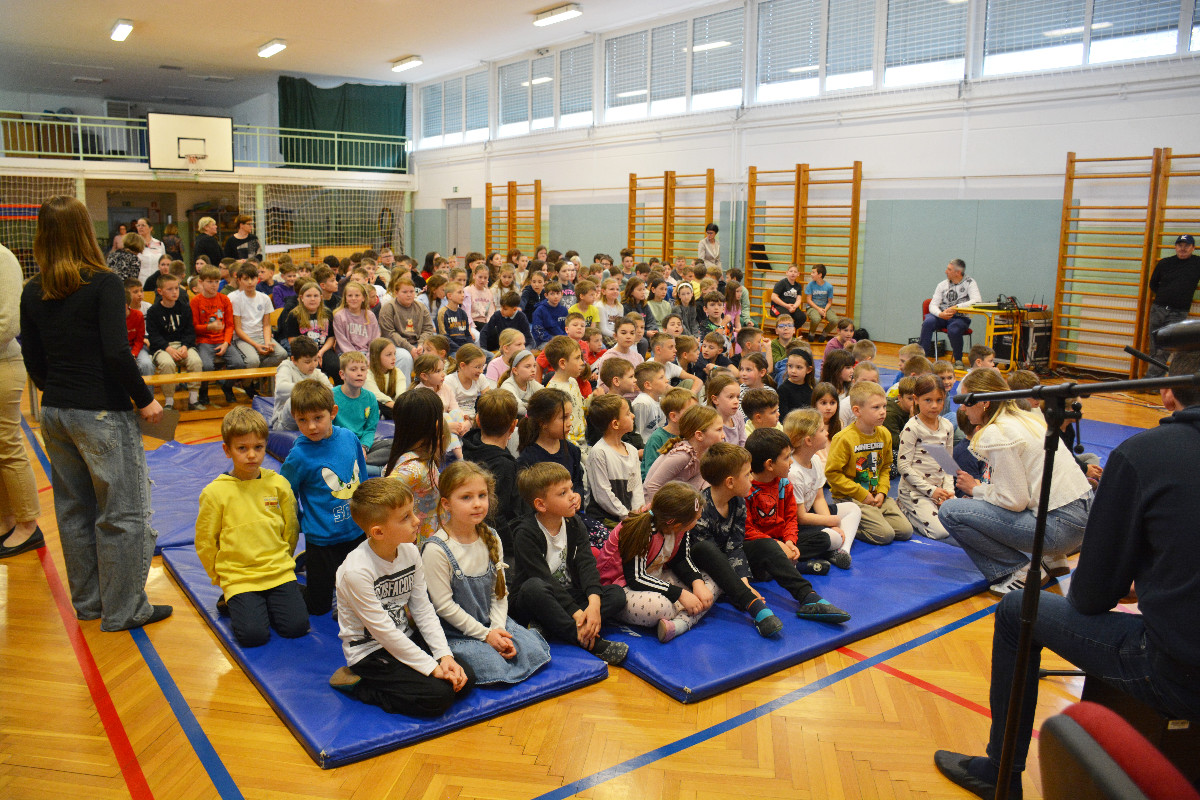 Dan smo sklenili s slavnostno prireditvijo. Uživali smo ob odlični pevsko-glasbeni točki vokalne skupine in šolskega ansambla pod mentorstvom učiteljice Metke Caf, navdušili pa so nas tudi nežni zvoki flavte, ki jih je pričarala Ina Črnčec. Osrednji gost prireditve, ilustrator in pisatelj Uroš Hrovat, nas je nasmejal in očaral z ustvarjanjem svojih izjemnih ilustracij.
