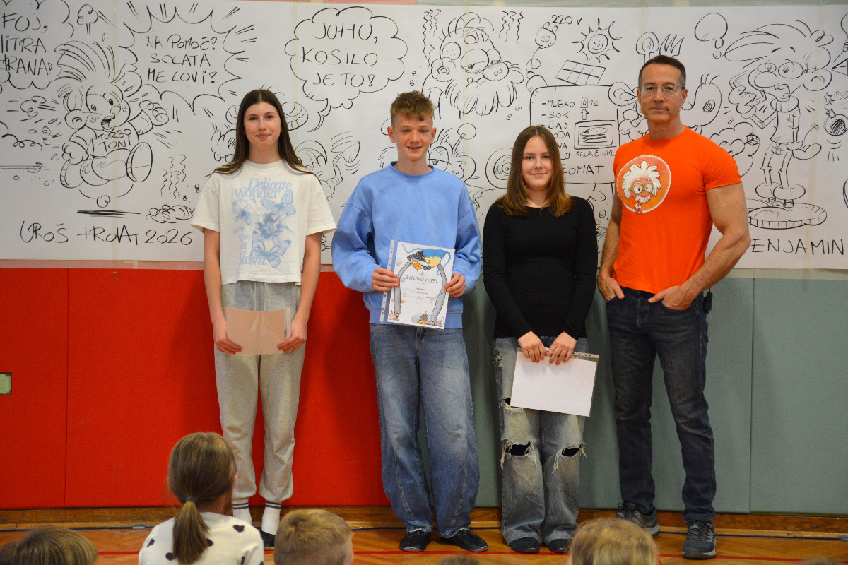 - 3. razred: Lin Senekovič, Lina Brlič, Mia Kolerič, Nik Senekovič (mentorica Silvija Špindler).