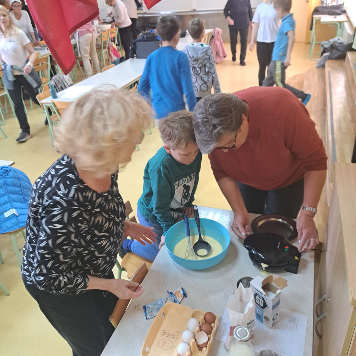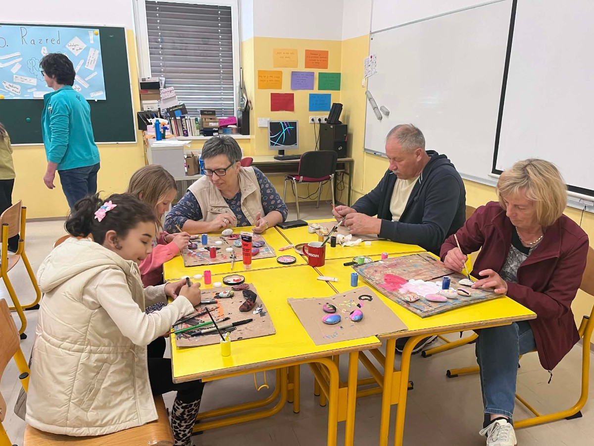 Medgeneracijska povezanost je ustvarila dan, poln topline, smeha in srčnosti. Z ramo ob rami smo pekli maslene piškote, puhaste palačinke in hrustljave vaflje. Skupaj urejali gredice, sadili zelišča in presajali sadike, ki bodo krasile našo okolico. Igrali smo človek ne jezi se in šah. Barvali kamenčke sreče in zasadili korita s sivko, ki nas bodo še dolgo spominjala na ta dan. Ob sladkanju pa je šolsko jedilnico napolnil smeh, veselje in sproščen pogovor, ki je marsikomu priklical lepe spomine na šolske dni. Poseben pečat prireditvi so s kulturnim programom dali Žak Frangeš ter sestri Ina in Pia Črnčec, ki so s svojim nastopom ogreli naša srca.
