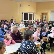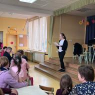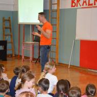 Naša gosta sta bila predsednica Občinske organizacije Rdečega križa Sveti Jurij gospa Olga Breznik ter gospod Peter Dvoršak, predsednik krvodajalske akcije v Jurovskem Dolu. Po uvodnem nagovoru ravnateljice je gospod Peter Dvoršak učencem predstavil potek krvodajalske akcije ter poudaril pomen darovanja krvi, gospa Olga Breznik pa je s prvošolci spregovorila o pomenu prostovoljstva.