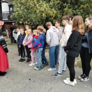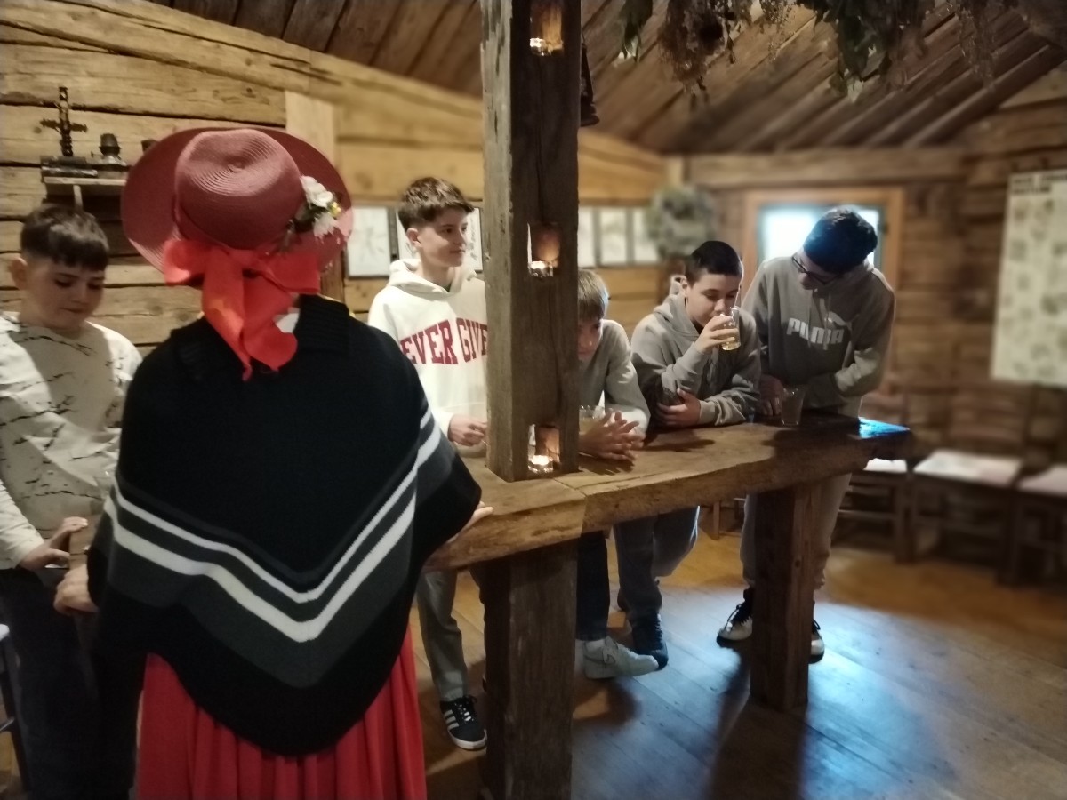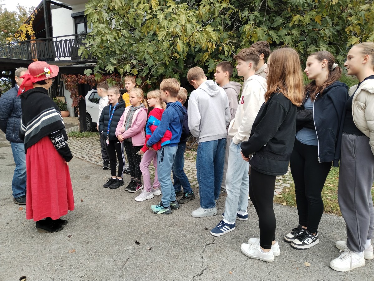 Učenci izbirnega predmeta sodobno kmetijstvo in razširjenega programa Svet okrog nas, so v petek, 24. 10. 2025, obiskali župana Občine Sv. Ana in izvedli zanimiv pogovor o kmetijstvu v občini in turistični ponudbi kraja. Učenka Pia Črnčec se je v imenu šole zahvalila za gostoljubnost in znanje, ki so ga učenci pridobili s strani župana Martina Breznika. V nadaljevanju nas je pot vodila po osrednjem trgu, kjer so učenci na kratko spoznali središčni del Sv. Ane. Najlepši del "pohajkovanja" po Sv. Ani nas je pričakal v Čajnici Kolarič. Prijazno sta nas sprejela ga. Danica in g. Jože Kolarič, ki živita resnično v očaranem delu Sv. Ane. Na "bregači"kot imenujeta del ekološkega vrta so učenci spoznali posamezna zelišča in kako blagodejno vplivajo na naše počutje oz. zdravje. Pod zeliščnim vrtom je učence pričakalo pravo presenečenje. Čajnica, kakor pravijo zemljanki je učence očarala. V družbi kamnitega kamina, posušenih zelišč in čebeljih izdelkov, nas je ga. Danica, v vlogi zeliščarke vodila skozi čudovito aktivno učno uro.