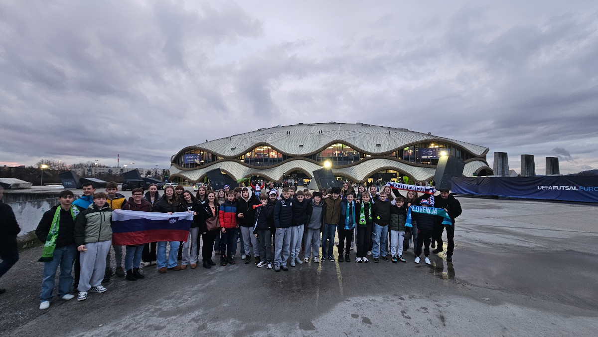 Včeraj so učenci 7., 8. in 9. razreda obiskali Ljubljano, kjer so si v dvorani Stožice ogledali tekmo evropskega prvenstva v futsalu med reprezentancama Slovenije in Belorusije. S pomočjo Nogometne zveze Slovenije (NZS) smo prejeli brezplačne vstopnice za ogled tekme, ki je odločala o potniku v polfinale prvenstva.