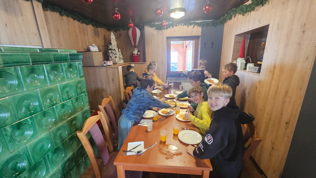 Očarala nas je domačnost Ruške koče ter prijaznost osebja. Po nastanitvi v sobah je sledil kratek sestanek z osnovnimi napotki in pravili bivanja. Po odličnem kosilu smo že komaj čakali na prvo smučanje in delo na snegu. Razdelili smo se v tri skupine, pridružil pa se nam je tudi učitelj Bojan.