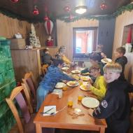 Da nismo ostali lačni, smo si za večerjo skupaj spekli slastne vaflje. Čeprav smo se spat odpravili nekoliko pozneje kot običajno, smo se zjutraj zbudili dobre volje. Po skupnem zajtrku smo se polni energije podali novim sobotnim dogodivščinam naproti.