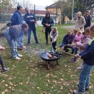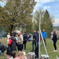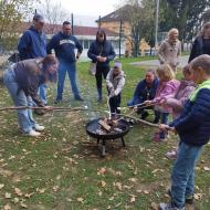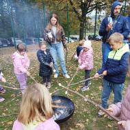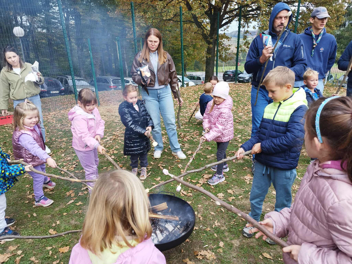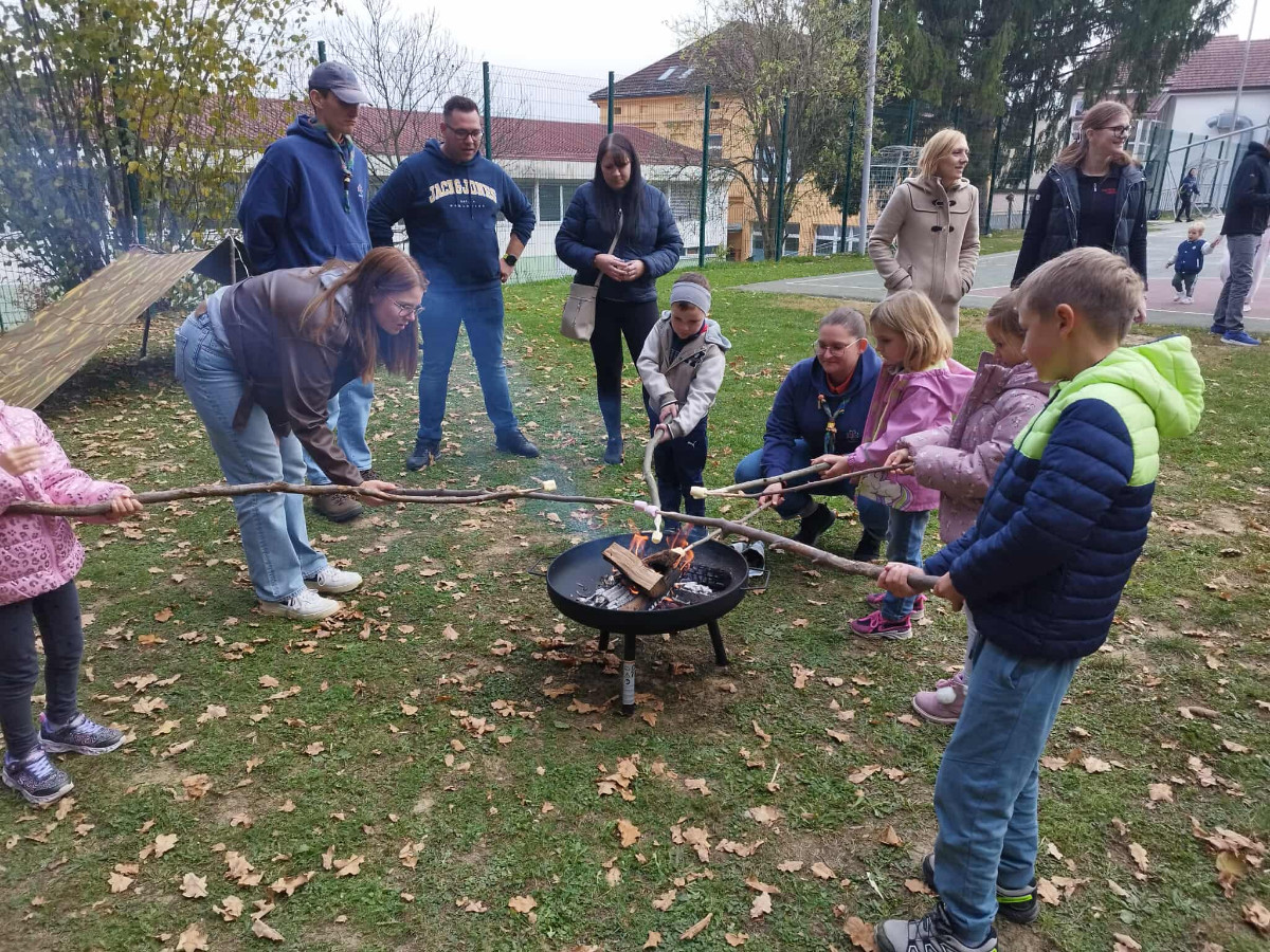 Srečanje sta popestrila dva skavta iz društva Skavti STEG Slovenske Gorice 1, ki sta za otroke in starše pripravila pravo gozdno dogodivščino. Postavila sta bivak, zakurila odprti ogenj in otroke povabila, da si sami spečejo penice na palici. Ob ognju so nastali sproščeni pogovori, otroški smeh in nešteto iskrivih pogledov.