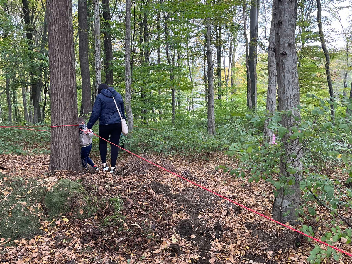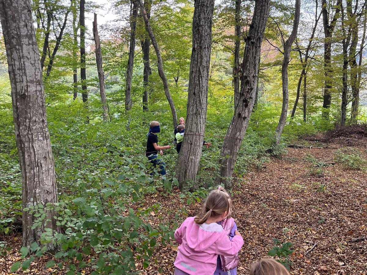 Da pa dan ne bi minil brez pravega izziva, sta skavta pripravila še slepo pot po gozdu, kjer so otroci s pomočjo staršev z zavezanimi očmi sledili vrvici ter zaupali svojim čutom – kar je bilo hkrati zabavno in malce skrivnostno.